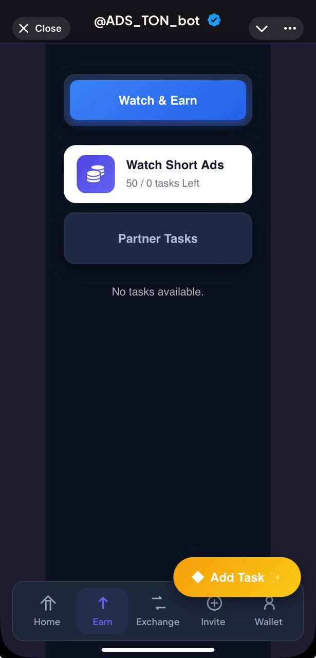 Simple ads clicking mechanics with small withdrawal limit and humble rewards as well. Click ads, complete tasks and withdraw!
