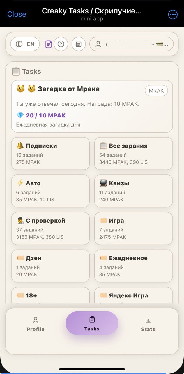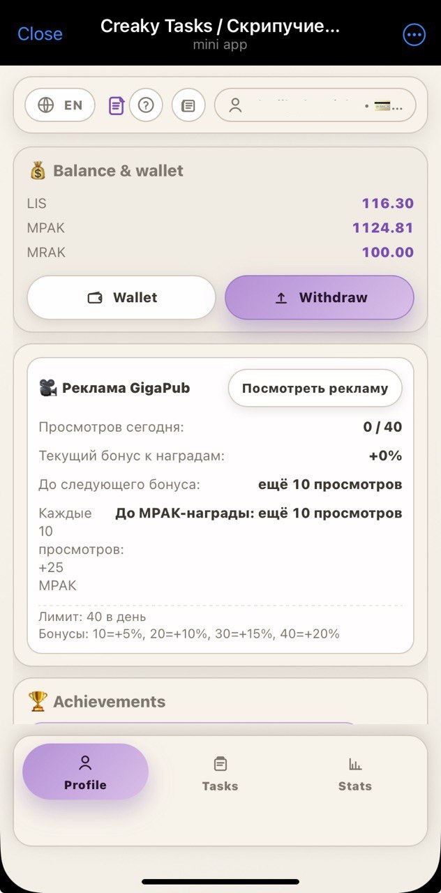 Complete variety of tasks to receive $MPAK and $LIS tokens: daily riddles, subscribtions, gamefied tasks and more. Invite friends to receive even more rewards for their activity!