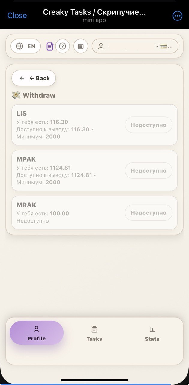 | đ° Min. withdrawal | 5000.0000 | $MPAK (TON) | |