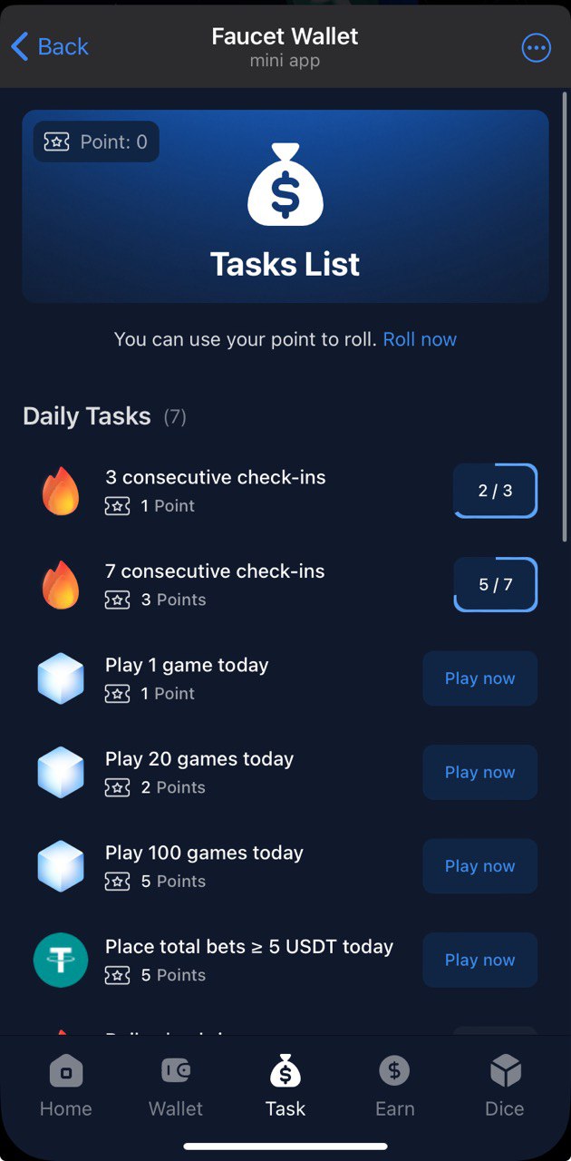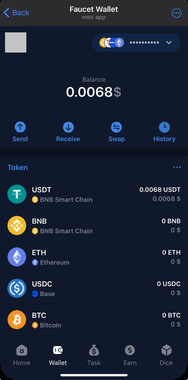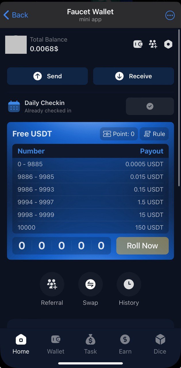 App presents itself as a "wallet", so it has capabilities to hold your funds of different currencies. Moreover, it provides a couple of ways to earn: daily spins with guaranteed micro $USDT rewardsπ, staking π and dice rolling π². Not affiliated with FaucetPay wallet.