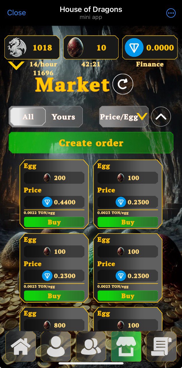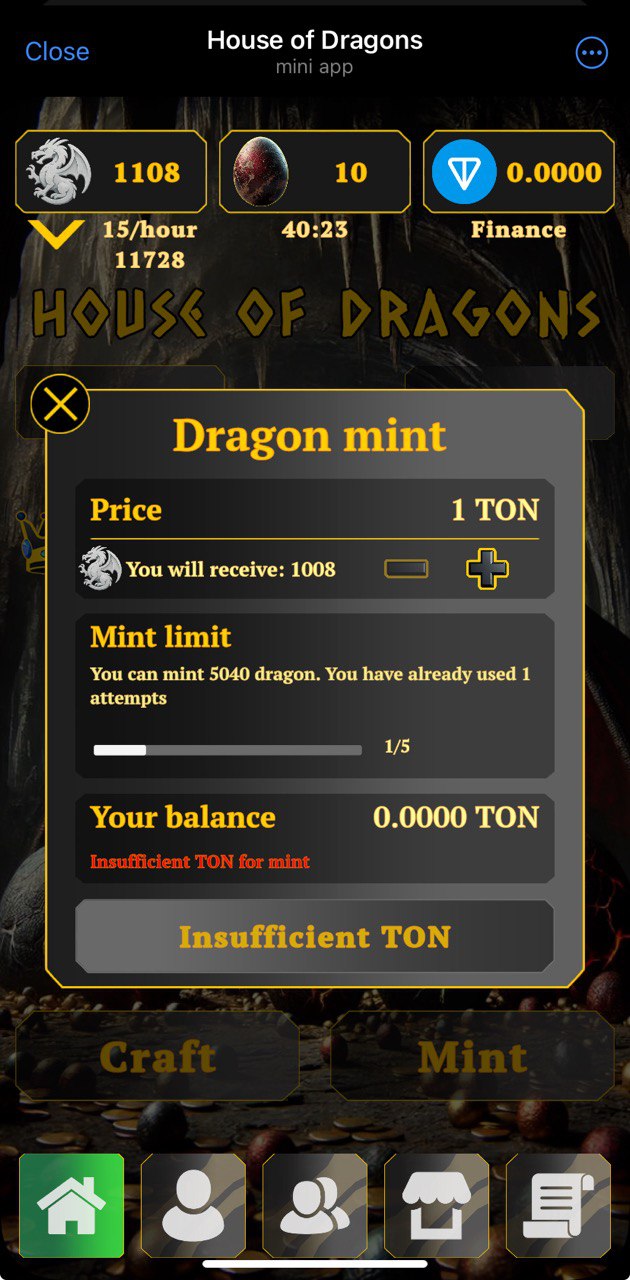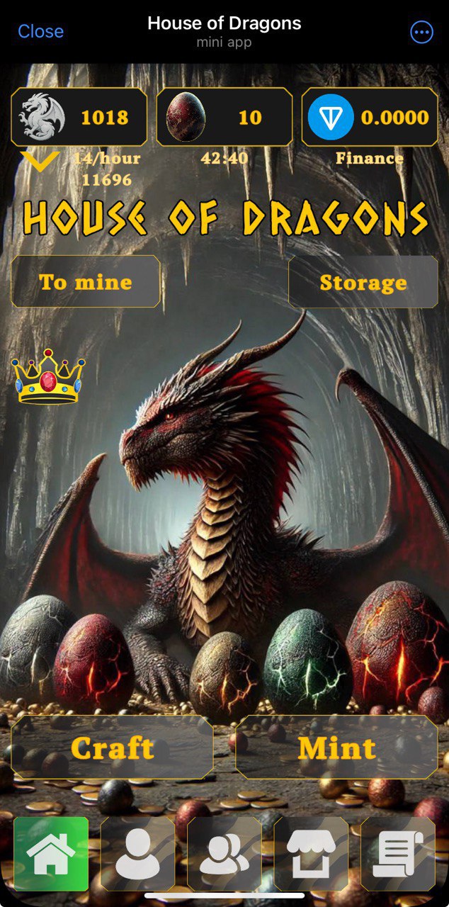 Similar mechaincs to đĻ Squid Pepe bot. Invest some $TON to purchase dragons who'll produce eggs. Then either sell these eggs for $TON at P2P market, or hatch more dragons to produce more eggs and repeat. This project is backed up by Money Mining app, which has some sort of good reputation. This brings some hope for better future.