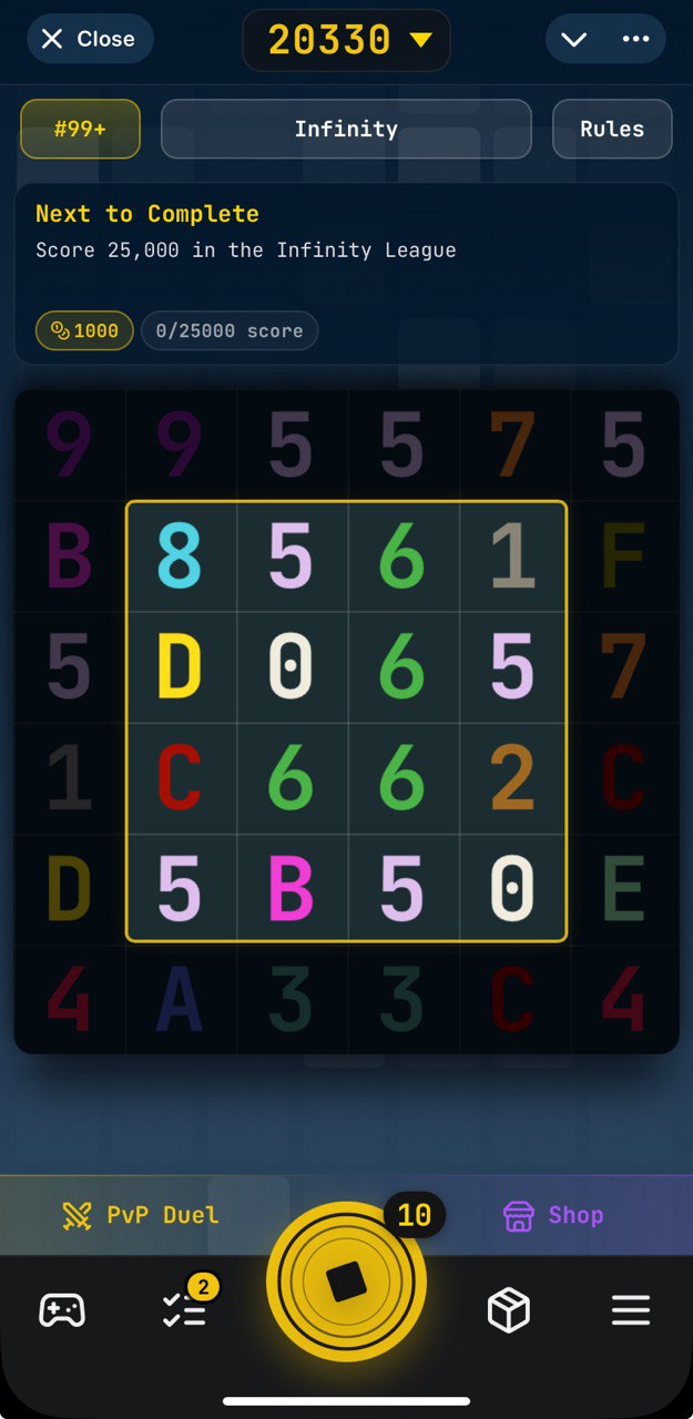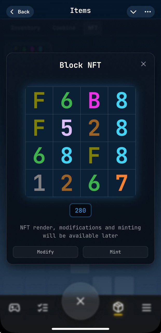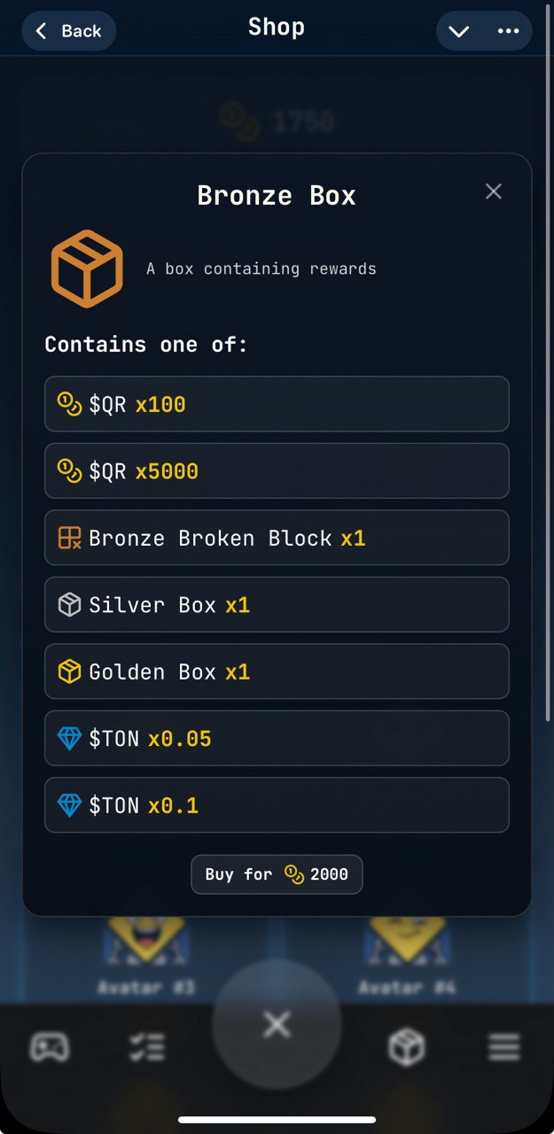 A competitive gaming app here: scan the board and pick best blocks to get the highest score π No straightforward earning opportunities here, but you can occasionally receive $TONπ drops from chests purchase via earned internal currency $QR. There are also some regular competitions where you can also earn some $TONπ. NFT system is present β collect broken blocks and craft new ones as NFT (minting is not available at the moment of publication though).
