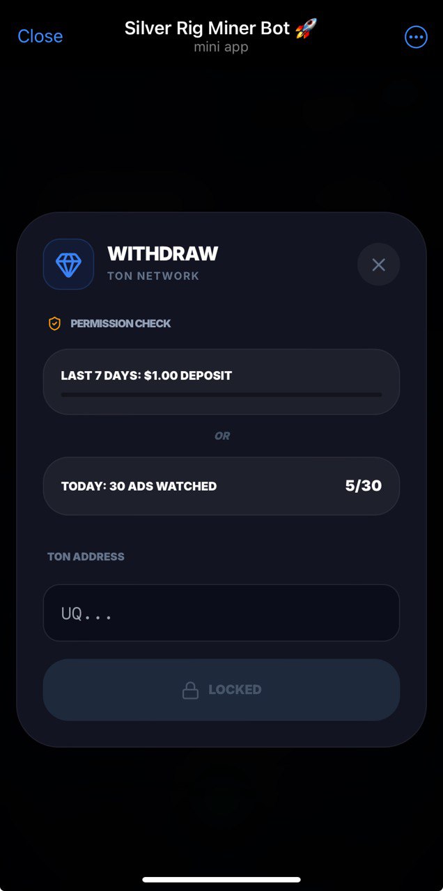 | Arbitrary | Watch 30 ads today or 1 $USDT deposited over past 7 days. |