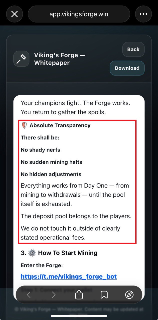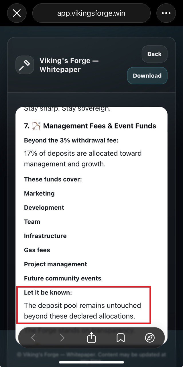Classical pseudo mining operations here: deposit $TONπ as "silver", purchase some vikings that farm "gold" for you and withdraw "gold" as $TONπ. What I like about this project is honesty: they clearly state in their whitepaper that project's deposit wallet serves as payment wallet to players. They also automatically deduct certain percent from deposits/withdrawals to separate wallet which will cover their operations π